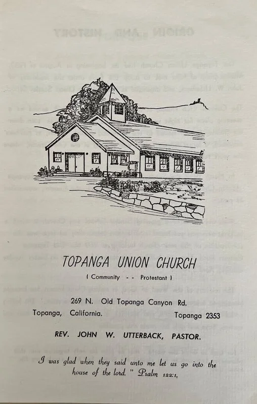 Originally named Topanga Union Church, in 1957 the name was changed to Topanga Community Church and later to Topanga Christian Fellowship.